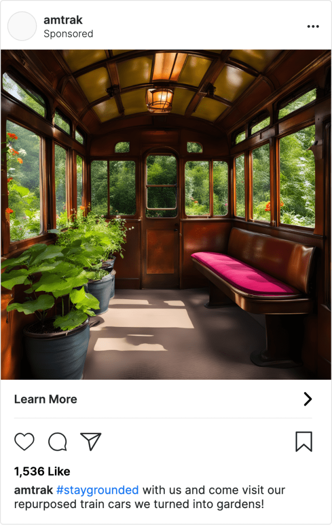 In one of my classes at the University of Minnesota, we were tasked with creating an advertising campaign for Amtrak. My group came up with the Stay Grounded campaign, which highlights the positives of staying on the ground for travel.
